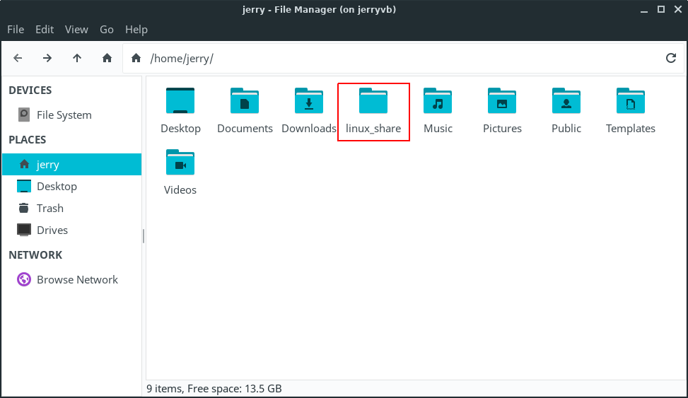 All that's left to do is to double click on the Linux Lite share and we will be inside the share folder. Now you can copy and paste files to your Linux Lite computer.