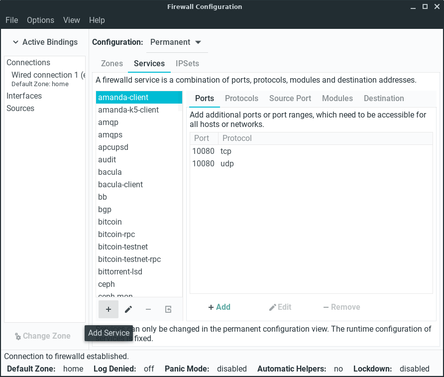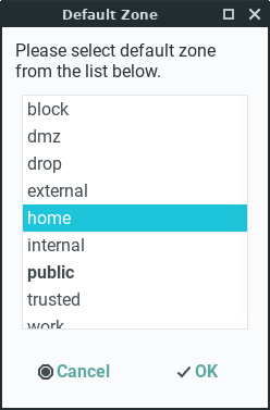 Click on Options, Reload Firewalld to activate our new firewall rule, enter your password if prompted.