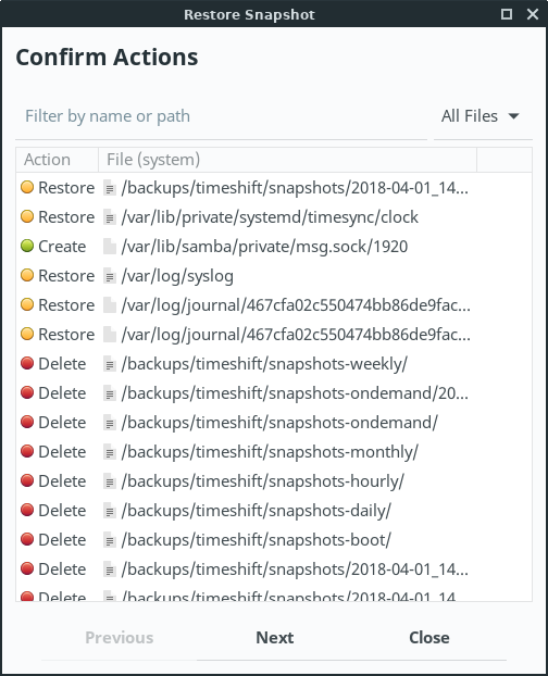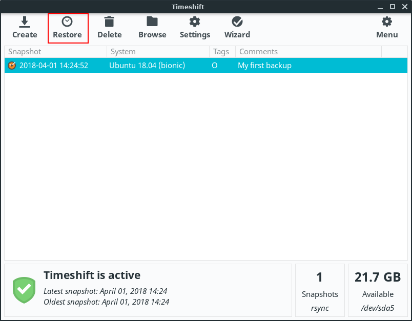 Timeshift - Restoring a backup.