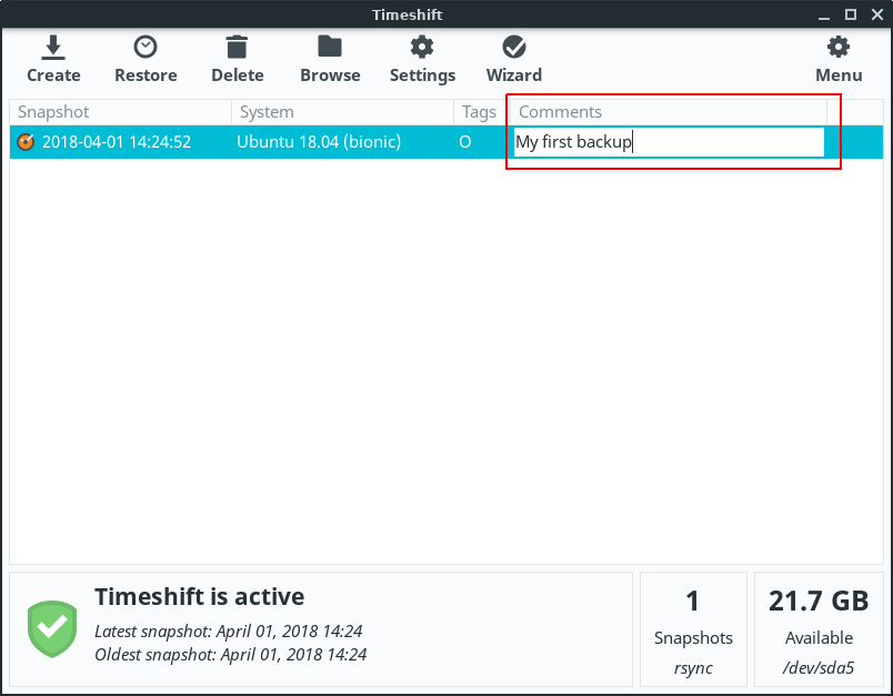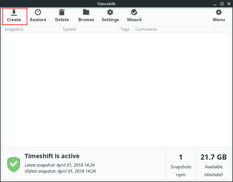 Timeshift - Creating a Restore Point.