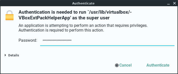Assuming you've already added the the VirtualBox Extension Pack to begin using USB's in your new VM, you need to add your username to the vboxusers group. (You only need to do that once, not for every individual VM you make.) You should perform the following steps while no VM's are open.