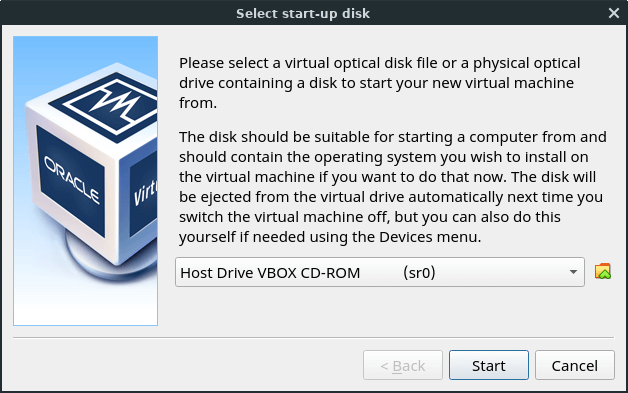 The first screen you see will ask you what to use as your installation source and the CD/DVD drive will likely be already listed. If that is what you are using and the disk is loaded in the tray, go ahead and hit Start.